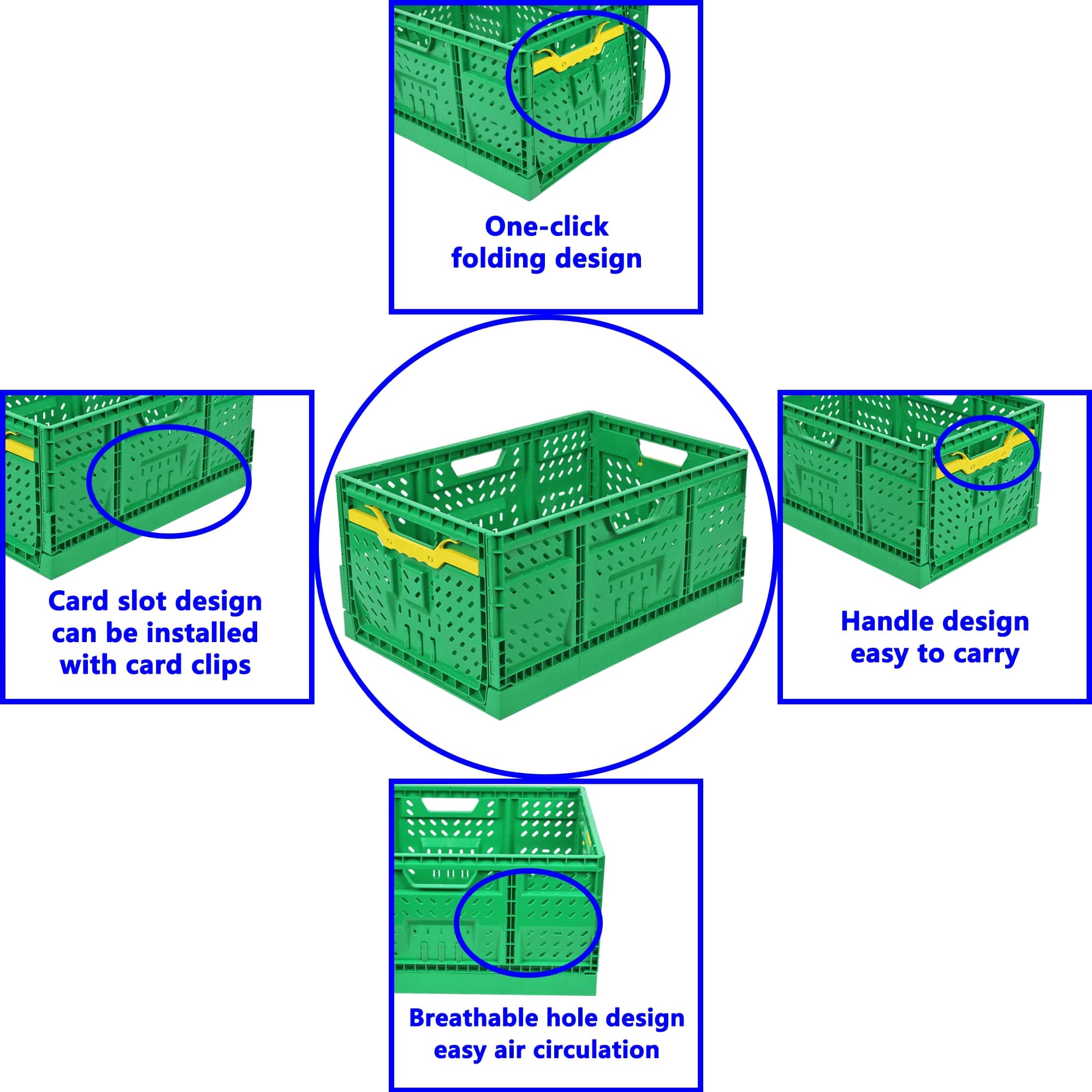 stacking, and handling. Its bright green color makes it easy to identify vegetable products and maintain